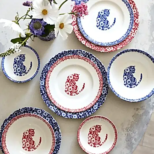 Inspired by Burleigh’s iconic Blue Calico pattern, the Calico Cat Collection brings a charming twist to our heritage design. Each piece of Calico Cat pottery is handcrafted in the heart of England, showcasing the intricate floral motif in rich blue or red. Whether displayed on a shelf or gifted to a collector, these decorative pieces celebrate the fusion of traditional craftsmanship and playful character — a perfect keepsake for cat lovers and Burleigh enthusiasts alike.