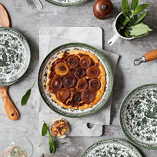 Discover a collection of Green Regal Peacock plates, soup bowls, pasta bowls, and more. This deep green floral design looks charming on its own, but also works perfectly with our Green Asiatic Pheasants range and our other Regal Peacock collections.