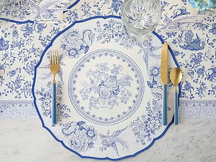 Complete your space and make every occasion even more special with our beautifully designed paper products. Discover elegant greetings cards and table stationery — including table cards, place cards, and beautiful paper napkins — courtesy of our partners at Hester & Cook. Each one is adorned with one of our iconic floral prints such as Green and Blue Asiatic Pheasants, Green and Blue Regal Peacock, and Blue Calico among others. Whether you're celebrating a birthday, wedding, or any other event, make Burleigh part of the occasion.