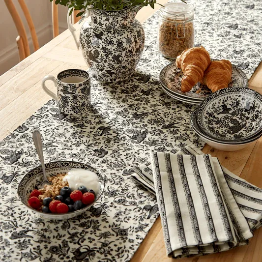 Regular price £18.00 GBPRegular priceUnit price perSale price £18.00 GBPBurleigh x Bedeck of Belfast Charcoal and White Regal Peacock Table Runner
