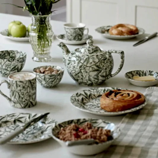 After printing, all Burleigh teapots are finished with a final glazing and firing in the kiln, which gives each peace a delicate shine. This also ensures that our ceramics are dishwasher and microwave safe.