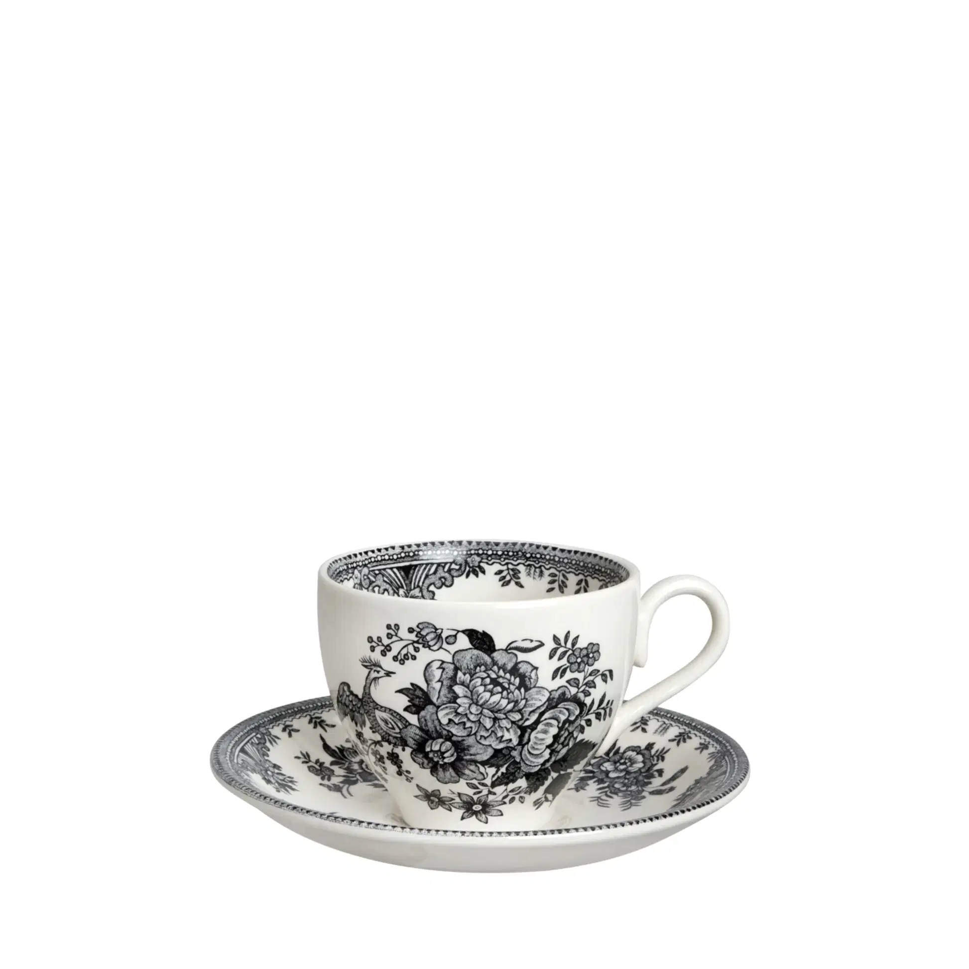 The Black & White Asiatic Pheasants Teacup & Saucer set pairs traditional design with everyday elegance. The 187ml cup is decorated with Burleigh’s black and white pheasant pattern using the tissue transfer technique, while the matching saucer complements the cup beautifully. Perfect for tea, coffee, or hot chocolate, this set brings English craftsmanship to the table.