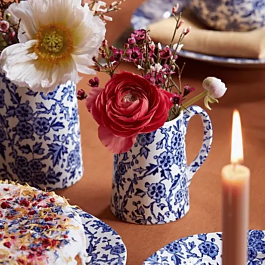 Charm your guests at the tea party with this beautiful tankard jug from Burleigh's celebrated Blue Arden range. The intricate hawthorn branch pattern and classic shape of the jug will add elegance and refinement to your refreshments. Uniquely decorated by skilled craftsmen with Burleigh's centuries-old technique of tissue transfer printing from hand-engraved copper rollers.